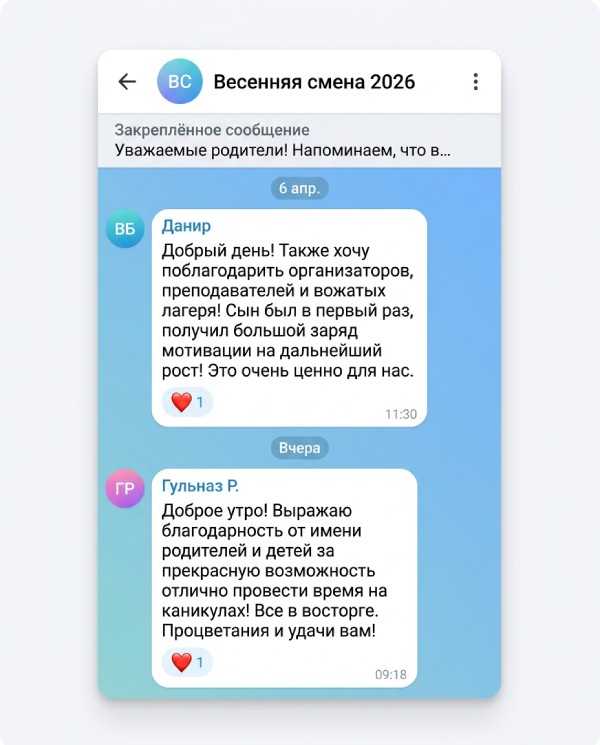 в родительском чате весенней смены